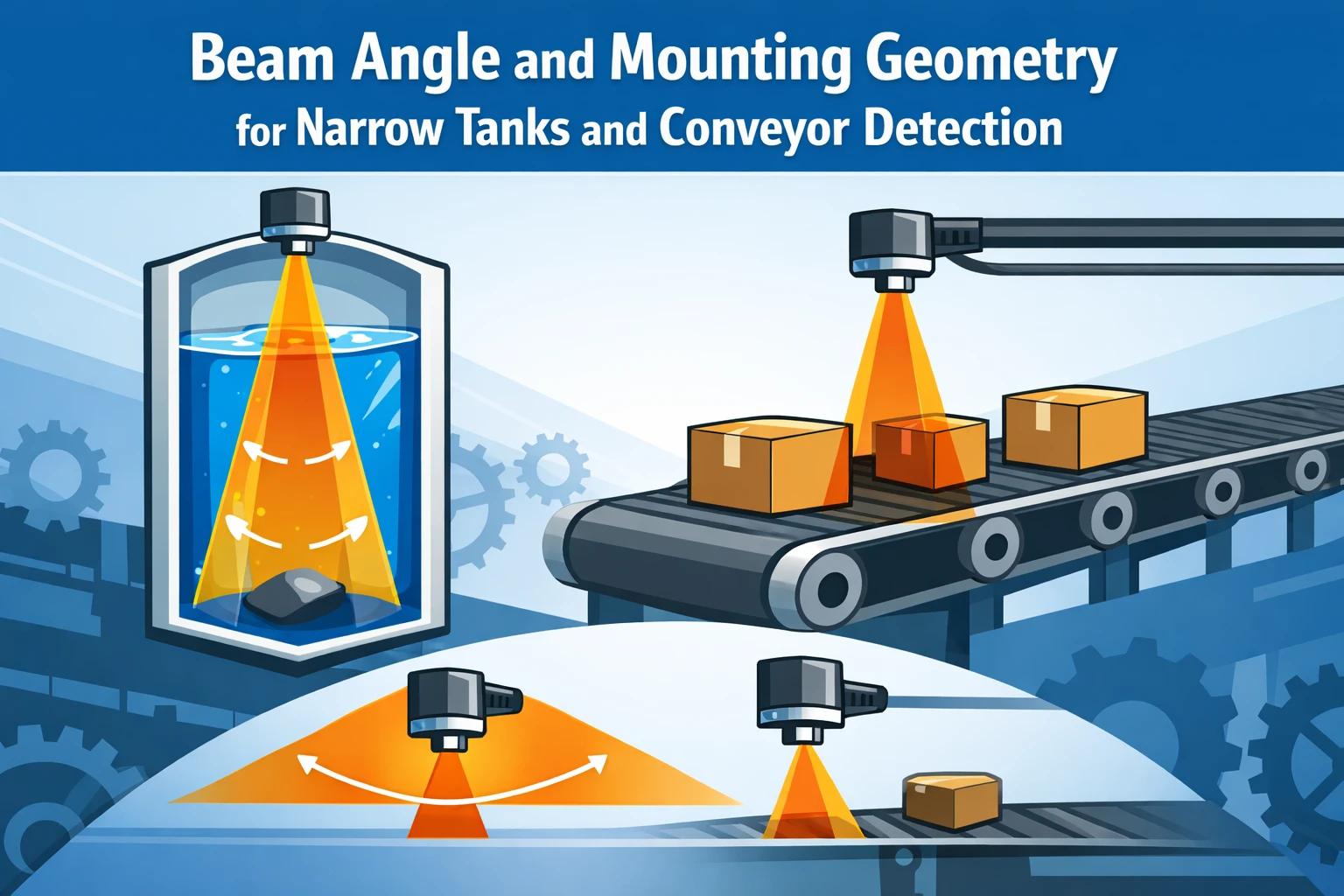 Beam Angle and Mounting Geometry for Narrow Tanks and Conveyor Detection